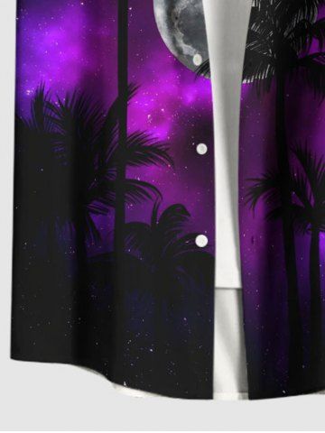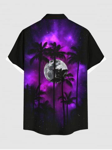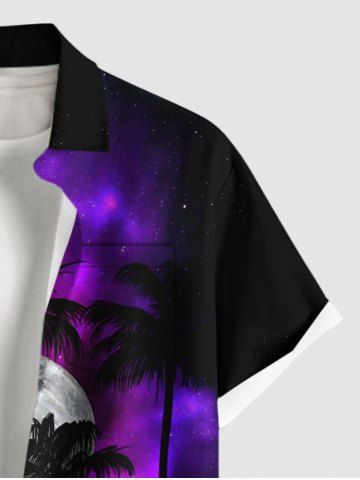 Plus Size Coconut Tree Galaxy Moon Print Buttons Pocket Shirt For Men - Black - 6xl