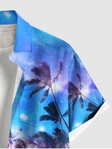 Plus Size Coconut Tree Galaxy Ombre Print Buttons Pocket Hawaii Shirt For Men - Purple - M