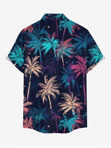 Plus Size Coconut Tree Galaxy Print Hawaii Button Pocket Shirt For Men - Deep Blue - M