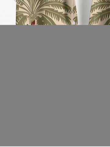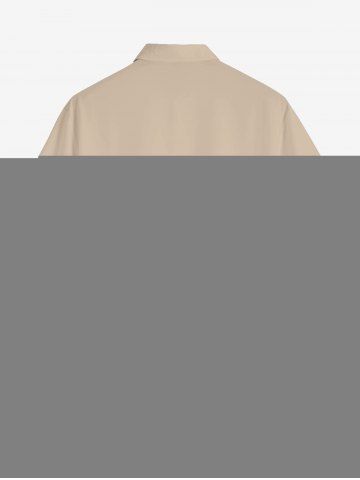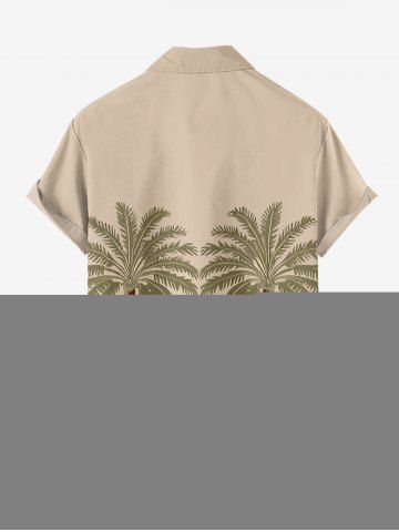 Plus Size Coconut Tree Geo Pattern Print Buttons Pocket Hawaii Shirt For Men - Tan - M