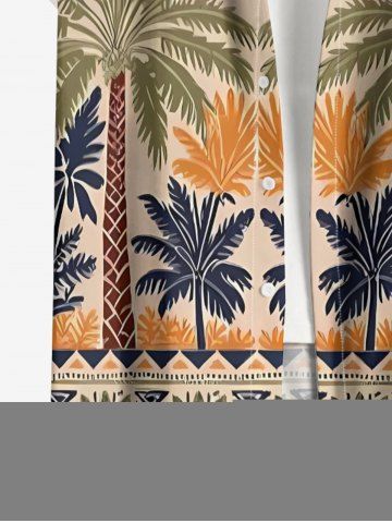 Plus Size Coconut Tree Geo Pattern Print Buttons Pocket Hawaii Shirt For Men - Tan - 2xl