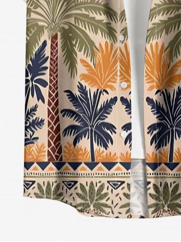 Plus Size Coconut Tree Geo Pattern Print Buttons Pocket Hawaii Shirt For Men - Tan - 3xl