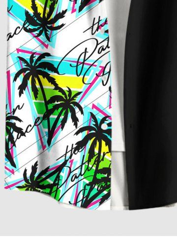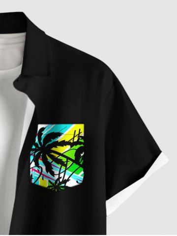 Plus Size Coconut Tree Geometric Colorblock Letters Print Hawaii Button Pocket Shirt For Men - Black - 6xl