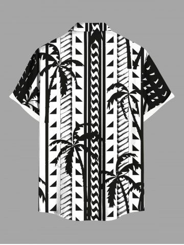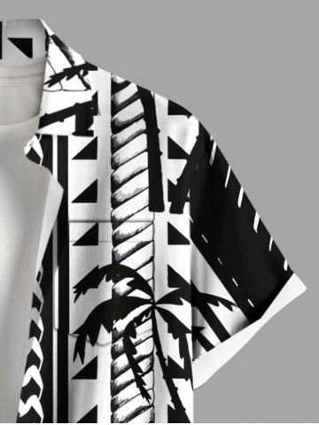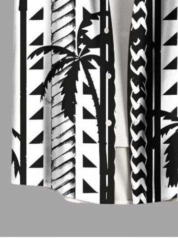 Plus Size Coconut Tree Geometric Graphic Print Hawaii Button Pocket Shirt For Men - Black - 6xl
