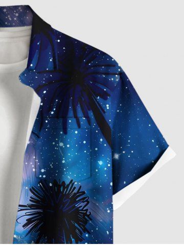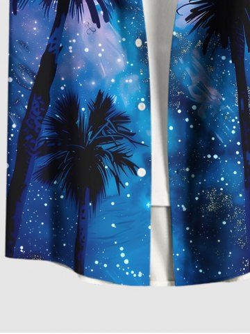 Plus Size Coconut Tree Glitter Ombre Galaxy Print Hawaii Button Pocket Shirt For Men - Blue - S