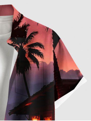Plus Size Coconut Tree Glitter Sailboat House Sea Print Hawaii Button Pocket Shirt For Men - Red - S