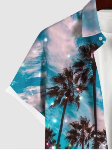 Plus Size Coconut Tree Glitter Sky Beach Print Hawaii Button Pocket Shirt For Men - Multi-a - L