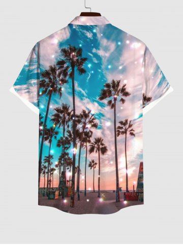 Plus Size Coconut Tree Glitter Sky Beach Print Hawaii Button Pocket Shirt For Men - Multi-a - 4xl