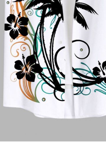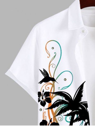 Plus Size Coconut Tree Hibiscus Flower Bird Print Buttons Pocket Hawaii Shirt For Men - White - 3xl