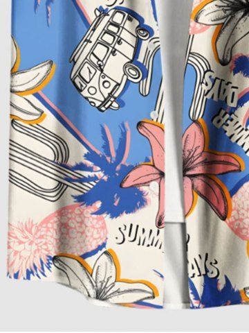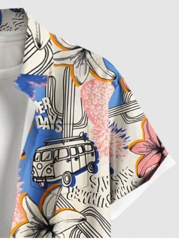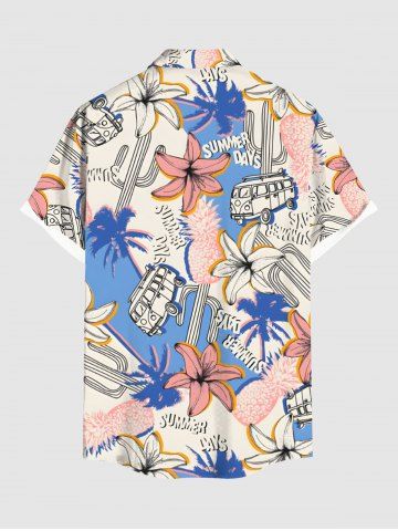 Short Sleeves Shirts > Plus Size Coconut Tree Hibiscus Flower Bus Pineapple Cactus Print Hawaii Button Pocket Shirt For Men