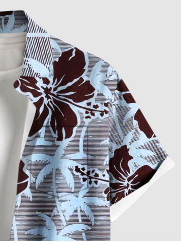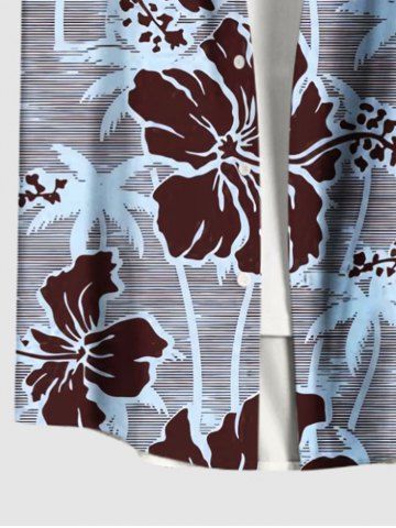 Plus Size Coconut Tree Hibiscus Flower Print Hawaii Button Pocket Shirt For Men - Powder Blue - M