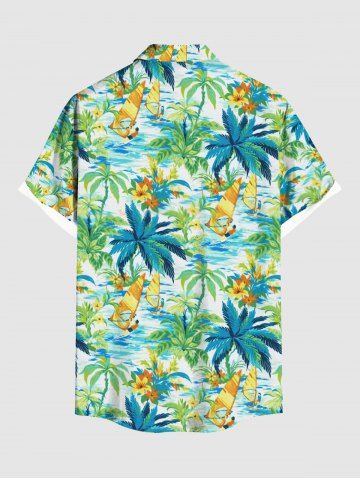 Plus Size Coconut Tree Hibiscus Flower Sea Surfer Print Hawaii Button Pocket Shirt For Men - Green - M