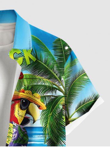 Plus Size Coconut Tree Hibiscus Flowers Parrot Seascape Print Buttons Pocket Hawaii Shirt For Men - Sky Blue - 4xl