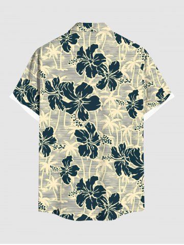 Plus Size Coconut Tree Hibiscus Flowers Print Buttons Pocket Hawaii Shirt For Men - Beige - Xl
