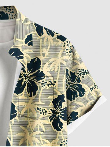 Plus Size Coconut Tree Hibiscus Flowers Print Buttons Pocket Hawaii Shirt For Men - Beige - 5xl