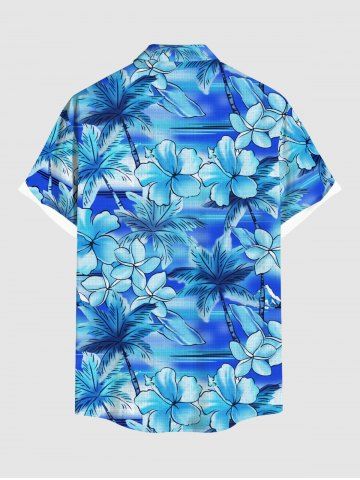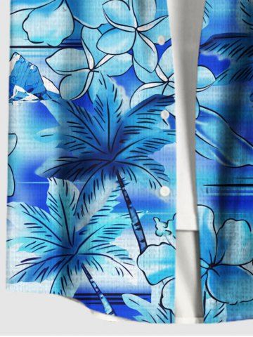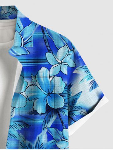Plus Size Coconut Tree Hibiscus Flowers Tie Dye Print Buttons Pocket Hawaii Shirt For Men - Sky Blue - 6xl