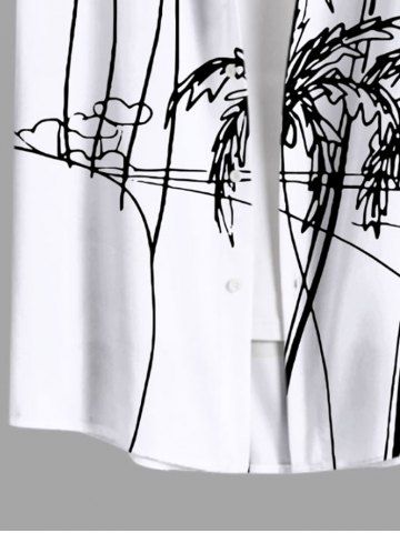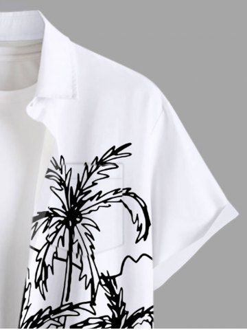 Plus Size Coconut Tree Highway Hand-painted Two Tone Print Hawaii Button Pocket Shirt For Men - White - Xl