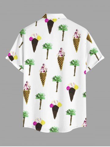 Plus Size Coconut Tree Ice Cream Print Buttons Pocket Hawaii Shirt For Men - White - Xl