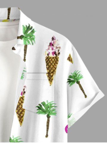 Plus Size Coconut Tree Ice Cream Print Buttons Pocket Hawaii Shirt For Men - White - 4xl