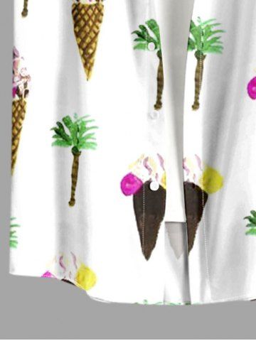Plus Size Coconut Tree Ice Cream Print Buttons Pocket Hawaii Shirt For Men - White - 6xl