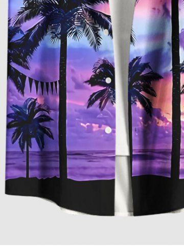 Plus Size Coconut Tree Illumination Ombre Galaxy Print Hawaii Button Pocket Shirt For Men - Purple - 2xl