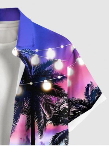 Plus Size Coconut Tree Illumination Ombre Galaxy Print Hawaii Button Pocket Shirt For Men - Purple - 5xl
