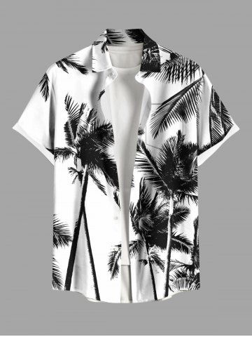 Plus Size Coconut Tree Ink Painting Print Hawaii Button Pocket Shirt For Men - White - 6xl