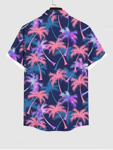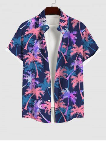 Hawaii Plus Size Coconut Tree Leaf Print Buttons Pocket Shirt For Men - Blue - L