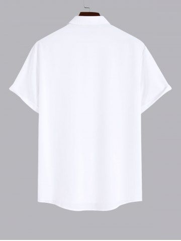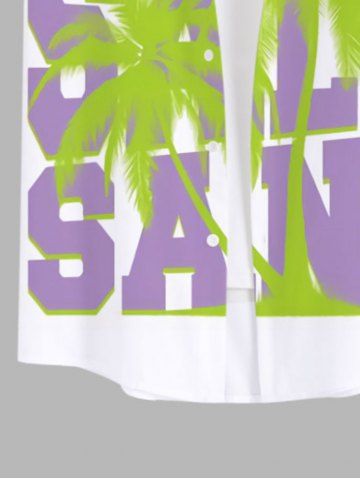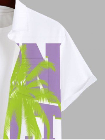 Plus Size Coconut Tree Letters Print Hawaii Button Pocket Shirt For Men - White - L
