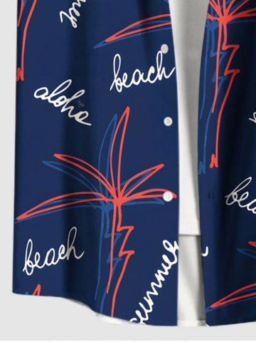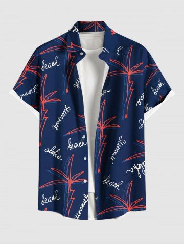 Short Sleeves Shirts > Plus Size Coconut Tree Letters Print Hawaii Button Pocket Shirt For Men