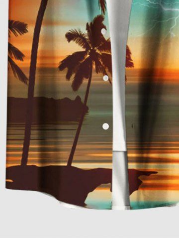 Plus Size Coconut Tree Lightning Ombre Dusk Print Hawaii Button Pocket Shirt For Men - Light Brown - 5xl