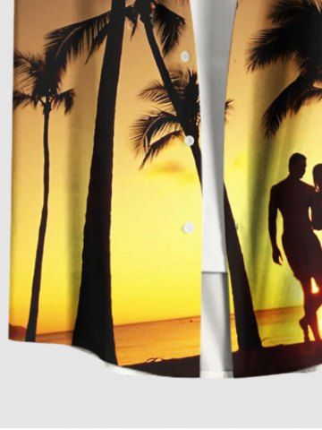 Plus Size Coconut Tree Lovers Ombre Dusk Print Hawaii Button Pocket Shirt For Men - Yellow - Xl