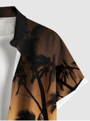 Short Sleeves Shirts > Plus Size Coconut Tree Lovers Ombre Dusk Print Hawaii Button Pocket Shirt For Men
