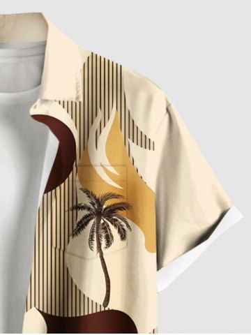Plus Size Coconut Tree Moon Beach Print Hawaii Button Pocket Shirt For Men - Light Coffee - 6xl