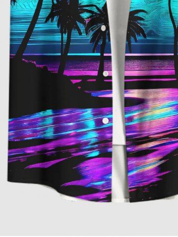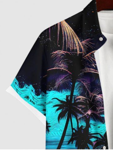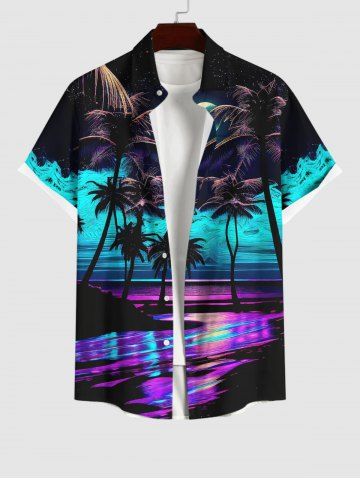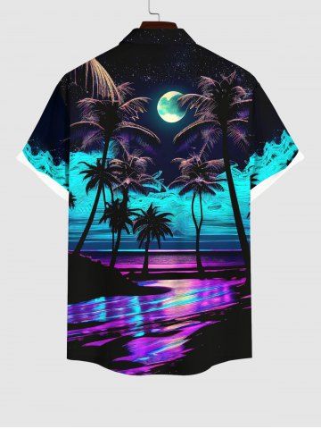 Short Sleeves Shirts > Plus Size Coconut Tree Moon Colorful Sea Surface Print Buttons Pocket Hawaii Shirt For Men