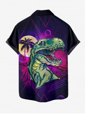 Plus Size Coconut Tree Moon Dinosaur Galaxy Print Hawaii Button Pocket Shirt For Men - Concord - 6xl
