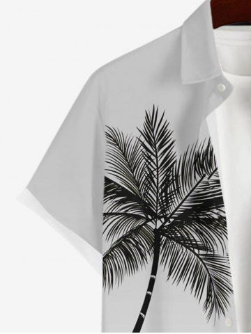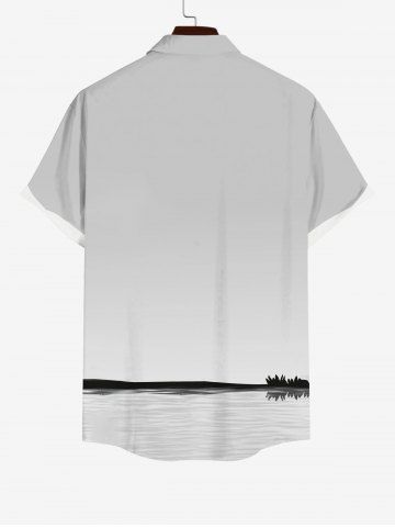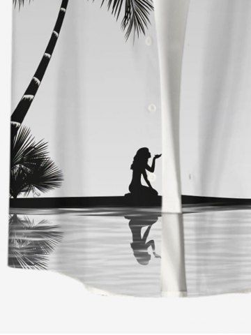 Plus Size Coconut Tree Moon Lady Reflection Print Buttons Pocket Hawaii Shirt For Men - Light Gray - 4xl