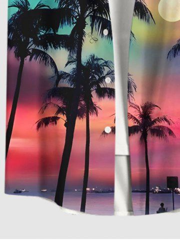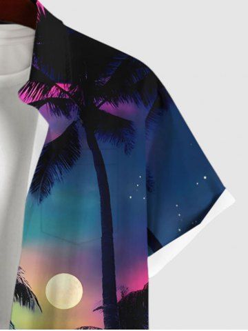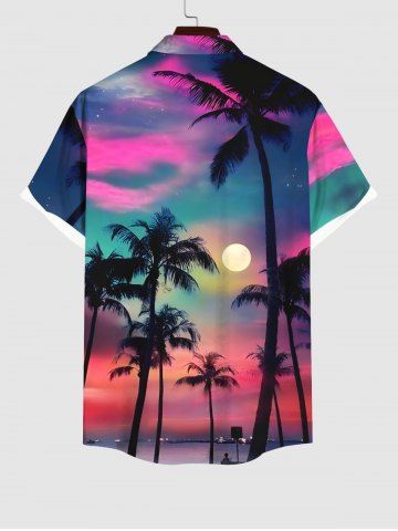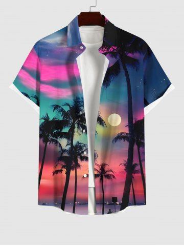 Short Sleeves Shirts > Plus Size Coconut Tree Moon Ombre Colorful Sky Print Buttons Pocket Hawaii Shirt For Men