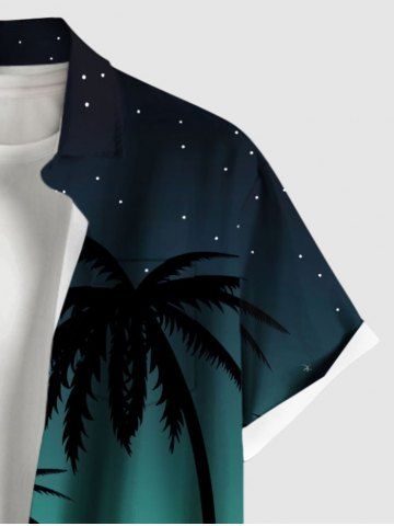 Plus Size Coconut Tree Moon Ombre Galaxy Print Hawaii Button Pocket Shirt For Men - Green - S
