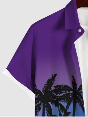 Plus Size Coconut Tree Moon Ombre Sky Print Buttons Pocket Hawaii Shirt For Men - Purple - S