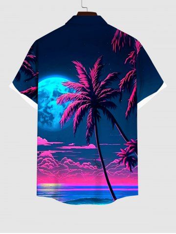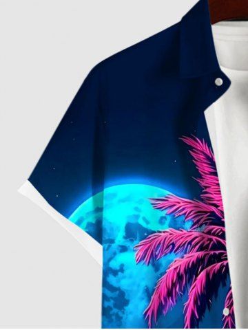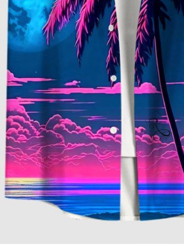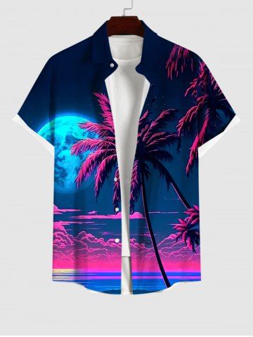 Short Sleeves Shirts > Plus Size Coconut Tree Moon Sea Cloud Ombre Colorblock Print Buttons Pocket Hawaii Shirt For Men