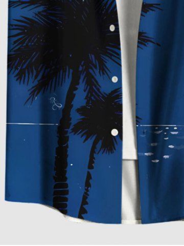 Plus Size Coconut Tree Moon Sea Print Hawaii Button Pocket Shirt For Men - Blue - S