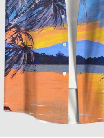 Short Sleeves Shirts > Plus Size Coconut Tree Mountain Bird Sunset Color Sky Print Buttons Pocket Hawaii Shirt For Men