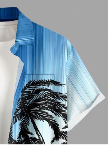 Plus Size Coconut Tree Mountain Ombre Print Buttons Pocket Hawaii Shirt For Men - Sky Blue - 2xl