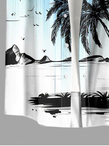 Plus Size Coconut Tree Mountain Ombre Print Buttons Pocket Hawaii Shirt For Men - Sky Blue - 5xl