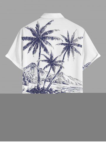 Plus Size Coconut Tree Mountain Seascape Print Buttons Pocket Hawaii Shirt For Men - Deep Blue - S