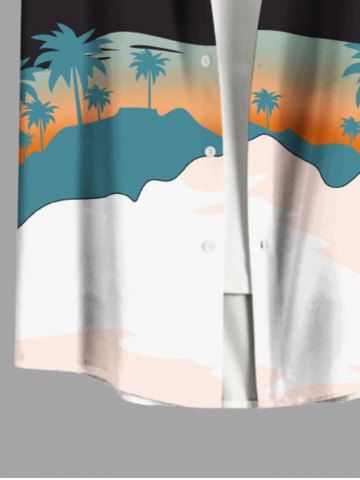Short Sleeves Shirts > Plus Size Coconut Tree Mountain Sun Ombre Print Buttons Pocket Hawaii Shirt For Men