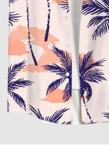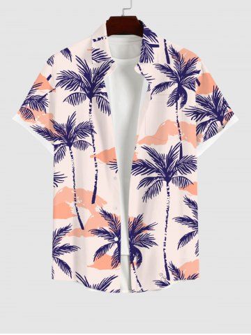 Short Sleeves Shirts > Plus Size Coconut Tree Mountains Colorblock Print Buttons Pocket Hawaii Shirt For Men