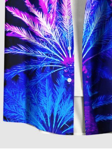 Plus Size Coconut Tree Neon Glitter 3D Print Buttons Pocket Hawaii Shirt For Men - Purple - 6xl