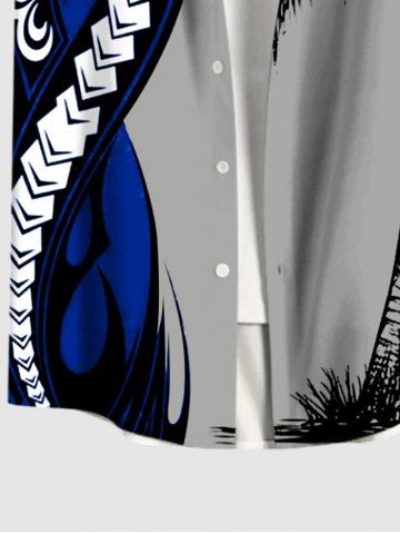 Plus Size Coconut Tree Octopus Colorblock Print Buttons Pocket Hawaii Shirt For Men - Gray - 5xl